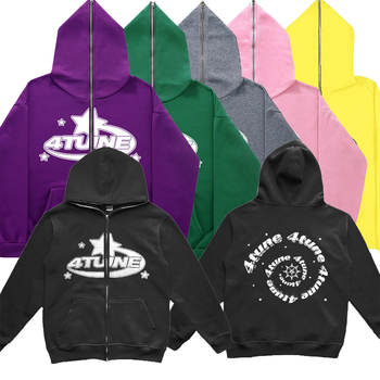הסיטונאי בתפזורת מודפסת לוגו כבד 400 gsm גברים וינטג 'חומצה נשטפה בגודל zip למעלה קפוצ' ונים סווטשירטים